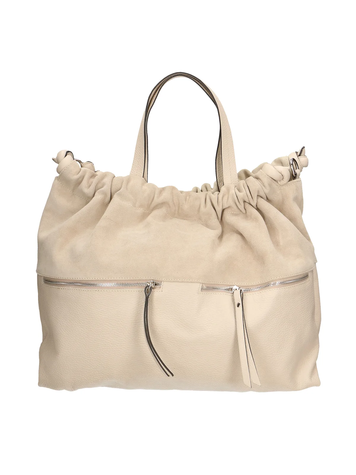 Dameshandtas met één compartiment, dubbel handvat en afneembare schouderband, magnetische sluiting. Italiaans handgemaakt product gemaakt van echt Dollaro-leer en suède. Gemaakt in Italië