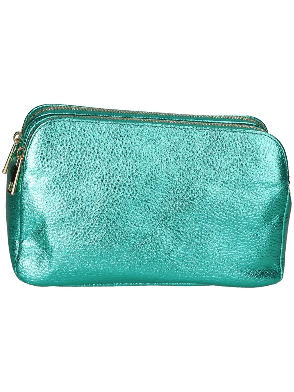 Clutch met twee compartimenten voor dames. Voorzien van een afneembare schouderband. Italiaans handgemaakt product gemaakt van echt gelamineerd dollarleer. Gemaakt in Italië.