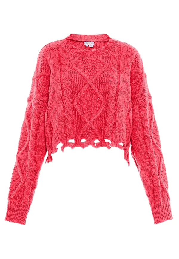 Design: Geribd ceintuurtje, Vlecht brei; Materiaal: Knitwear; Halstype: Ronde hals; Motief: Effen; Details: Cut-outs, Franjes; Extra's: Met textuur; Pasvorm: Normale pasvorm; Armlengte: Lange mouw; Lengte: Korte pasvorm