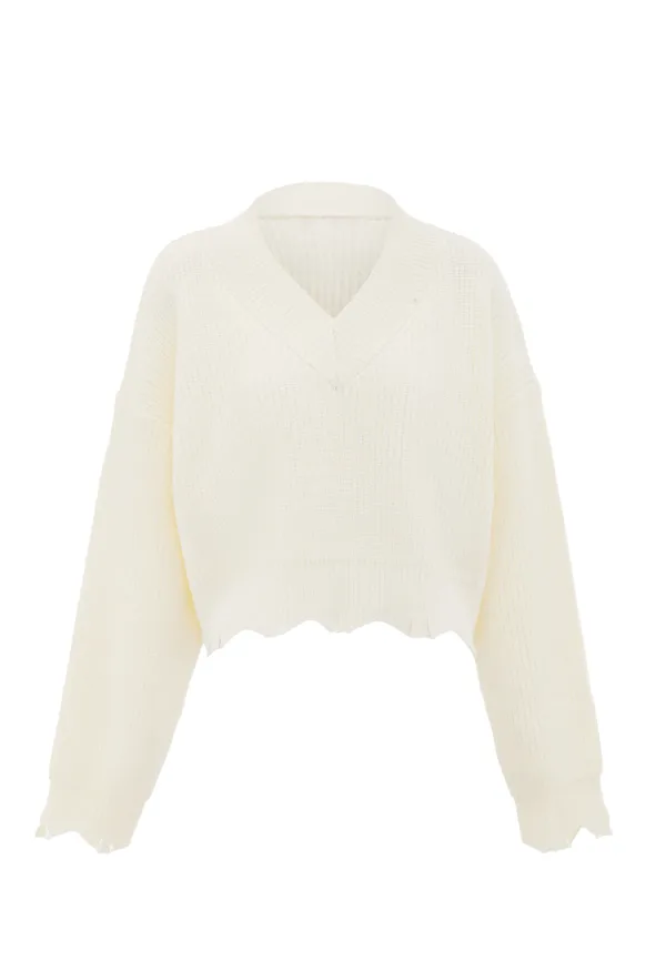Design: Geribbelde kraag; Materiaal: Knitwear; Halstype: V-hals; Motief: Effen; Details: Mesh; Extra's: Met textuur; Pasvorm: Losse pasvorm; Armlengte: Lange mouw; Lengte: Korte pasvorm