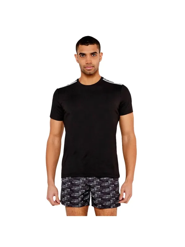 Emporio Armani Eagle heren T-shirt van zwart katoen. Authentiek Emporio Armani kledingstuk - streetwear/sportswear design van Emporio Armani - Emporio Armani herenmode, perfect voor dagelijks gebruik - Emporio Armani zwart T-shirt dat perfect combineert met de rest van je garderobe - comfortabel katoen - klassiek - Eagle -