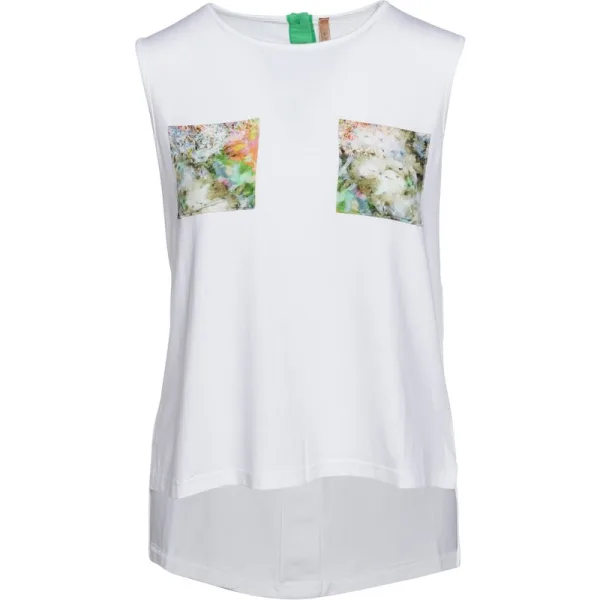 Laat je vrouwelijke kant zien in deze lieve gebloemde top met zakken van Conquista. De doorschijnende achterkant geeft een sensueel gevoel, terwijl de langere zoom een flatterend silhouet creëert. Contrasterend gekleurde knoopsluiting met vijf knopen bij de nek. Ronde hals. Mouwloos. Het afgebeelde model is 178 cm en draagt maat 36/S.