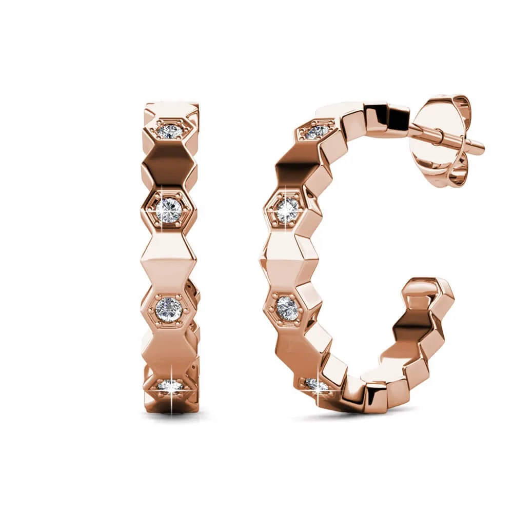 Gebogen oorbellen – Roségoud en kristal Prijzen
