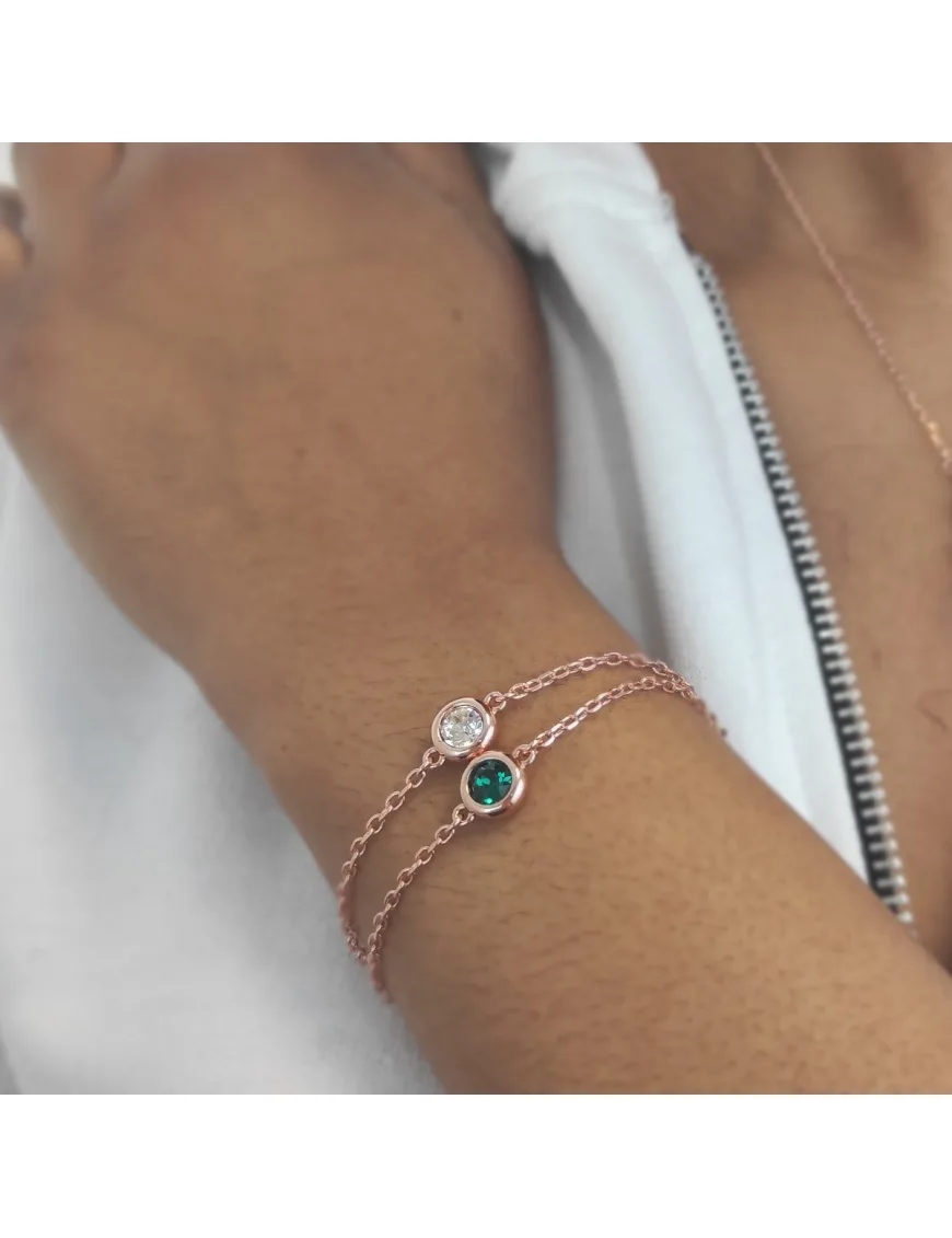 Compositie: Messing Afwerking: 18k roségoud verguld Steensoort: Oostenrijks kristal Aantal stenen (stuks): 2 Kleur steen: kristal en groen Lengte armbanden (mm): 180 + 55