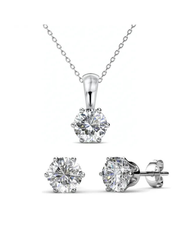 Samenstelling: hoogwaardig messing Afwerking: gerhodineerd Steensoort: Oostenrijks kristal Aantal stenen (stuks): 3 Steenkleur: kristal Kettinglengte: 400 + 50 Diameter van de oorbellen (mm): 5.2