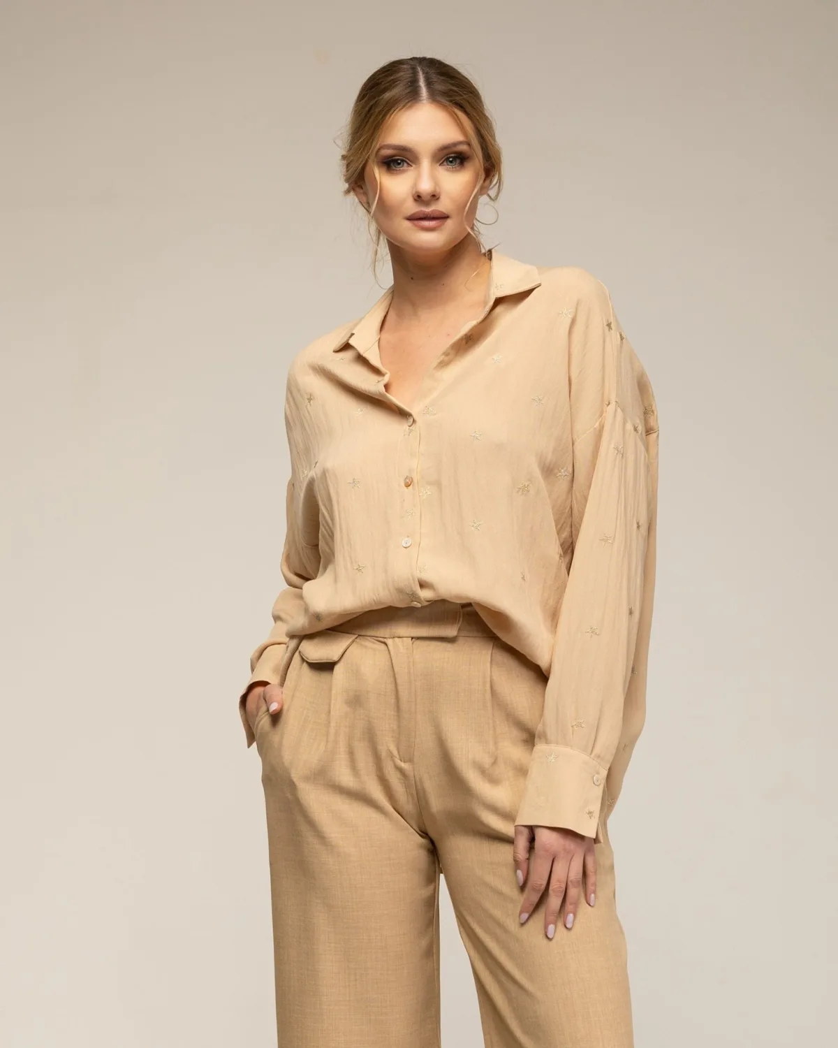 Shirt met lange mouwen en geborduurde sterren