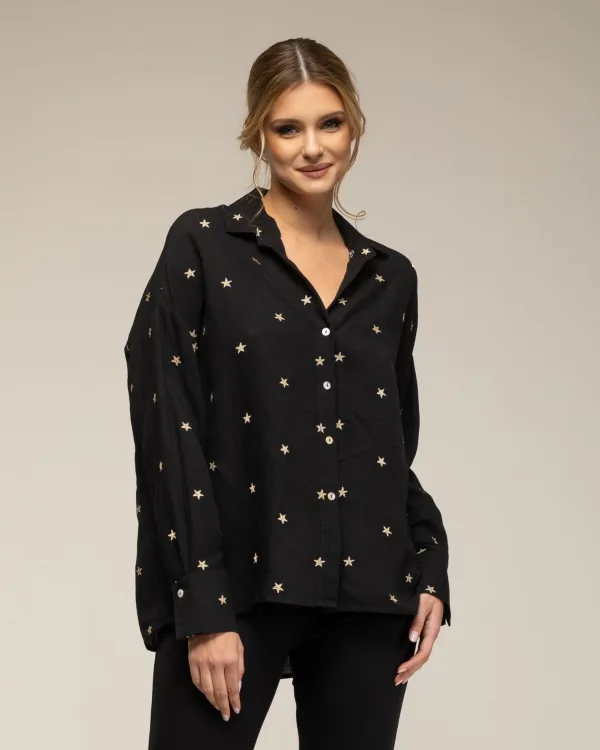 Shirt met lange mouwen en geborduurde sterren