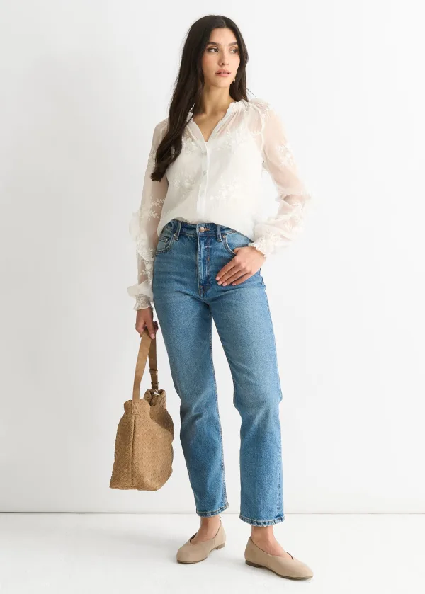 Verhoog je casual look met onze elegante geborduurde top met pofmouwen. Met ingewikkelde borduursels en vrouwelijke pofmouwen is deze top perfect voor een avondje uit of een geklede daglook. Gemaakt van hoogwaardige materialen voor langdurig comfort en stijl.