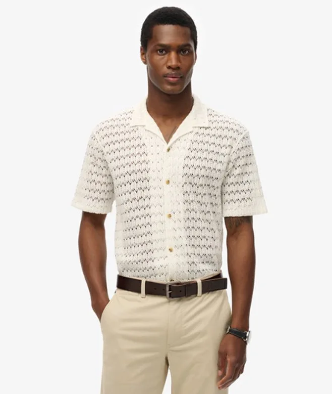 Relaxte pasvorm - de klassieke Superdry-pasvorm. Niet te nauwsluitend, niet te ruim, precies goed. Kies je gebruikelijke maat Standaardkraag Knoopsluiting Gebreide textuur Kenmerkende tab op de zoom Een iconisch basisstuk dat het hele seizoen door een zomers gevoel geeft. Het gebreide overhemd met textuur is uitgevoerd in een luxe haaksteek om een eigentijdse optie in je garderobe te worden, een echt verfijnd statement. Of je nu een look combineert met ambachtelijke flair voor een stranddag of v