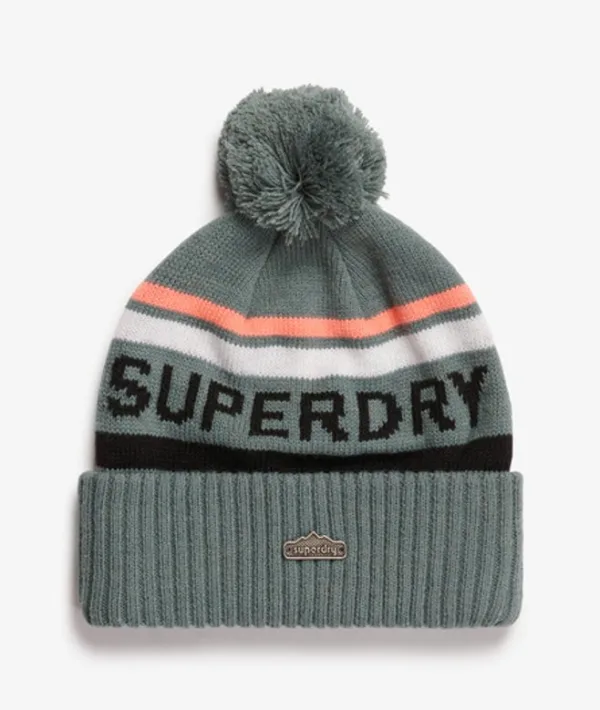 Pompon Opgerolde zoom Gebreid logo De Superdry gebreide beanie met logo is een betrouwbaar, zacht accessoire dat naadloos past bij je dagelijkse outfits. Deze winterbasic is perfect om elke winteroutfit af te maken, zodat je de kou buiten houdt en je modieuze look behouden blijft.