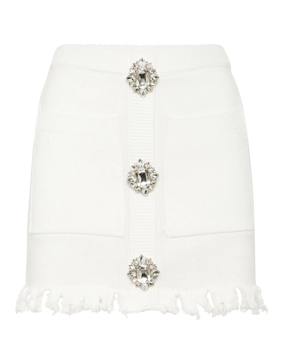 Uniek en stijlvol is ook een gebreide minirok. Bekijk dit katoenen model. Ontdek meer. Gebreid katoenen garen Juwelenbroches op de voorzijde Twee opgestikte zakken Ribgebreide zomen Gerafelde onderboord