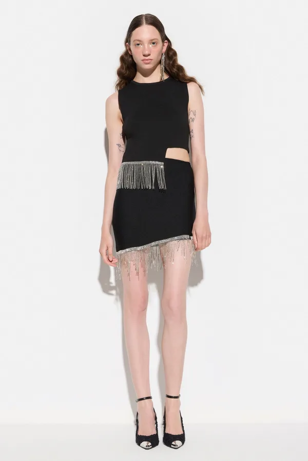 Design: Geribbelde kraag; Materiaal: Knitwear; Halstype: Ronde hals; Motief: Effen; Details: Franjes; Extra's: Met textuur; Pasvorm: Normale pasvorm; Armlengte: Mouwloos; Lengte: Normale lengte