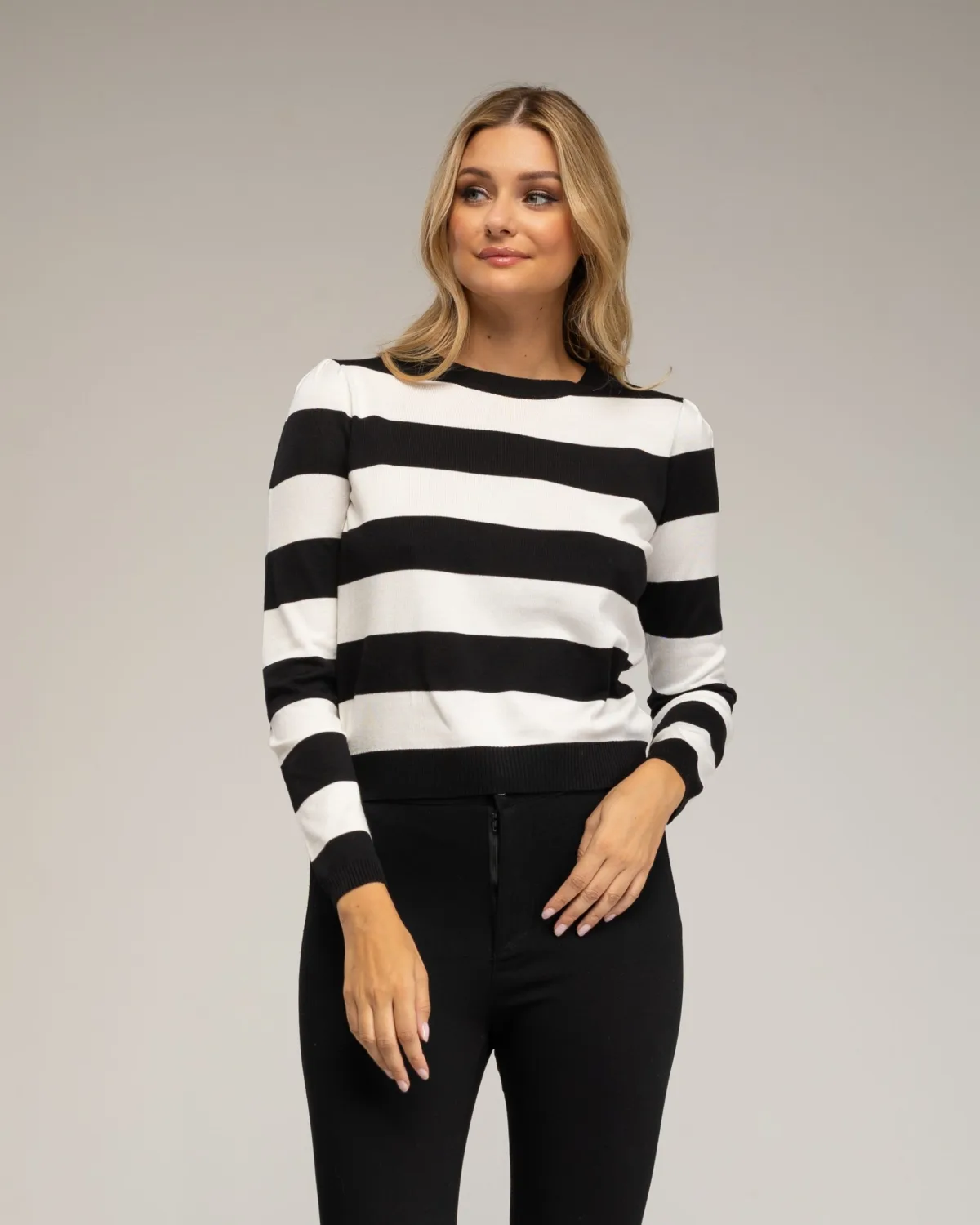 Gestreepte gebreide trui met ronde halslijn