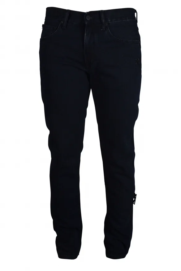 Zwarte jeans Off-White.Knoop- en ritssluiting.Model met 5 zakken. Witte pijlen gedrukt op de achterkant.Groen label.