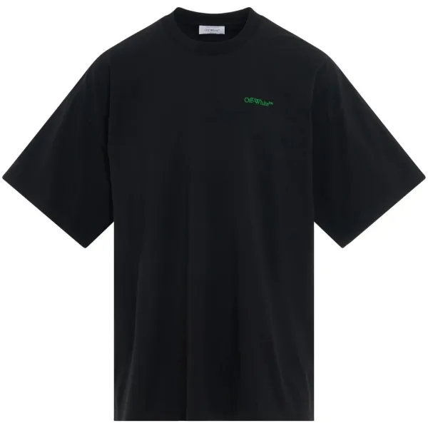 Gebroken wit Moon Tab oversized fit zwart T-shirt. Blijf stijlvol met dit gebroken witte oversized fit T-shirt. Dit T-shirt heeft een iconisch logo op de borst en zal zeker een gespreksstarter zijn. Pronk met uw unieke stijl!. Iconisch logo op de voorkant, Boxed Moon-ontwerp op de achterkant. Gebroken wit zwart T-shirt, oversized pasvorm. 100% katoen, gemaakt in Portugal, ronde hals, streetwear, korte mouw. Stijlcode: OMAA161F23JER0051050
