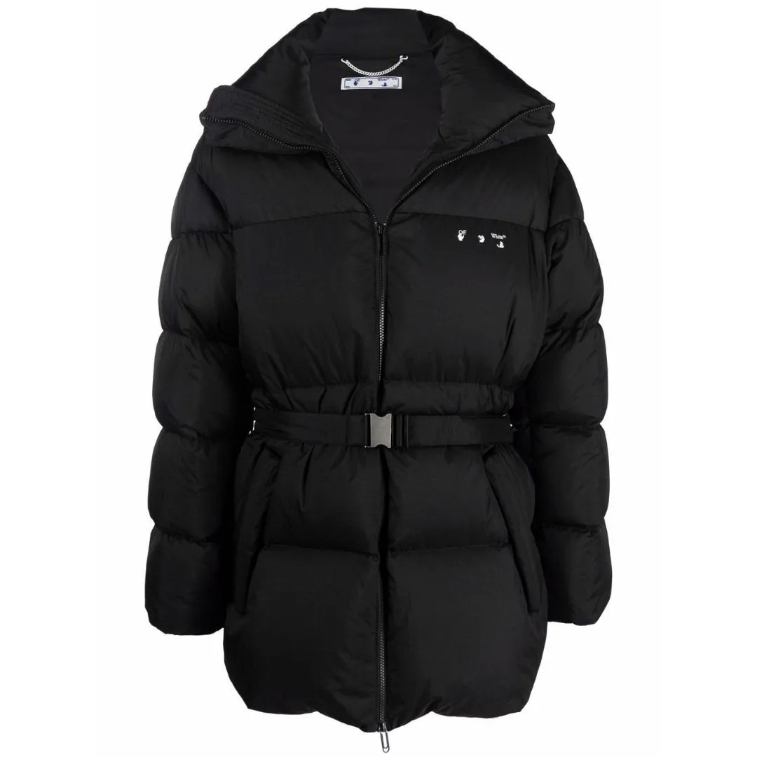Gebroken wit puffer zwart donsjack met tuc-detail Prijzen