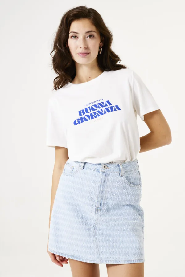 - Bij bol.com kun je GARCIA Dames Text print T-shirt Wit Korte mouw kopen voor slechts €20,99