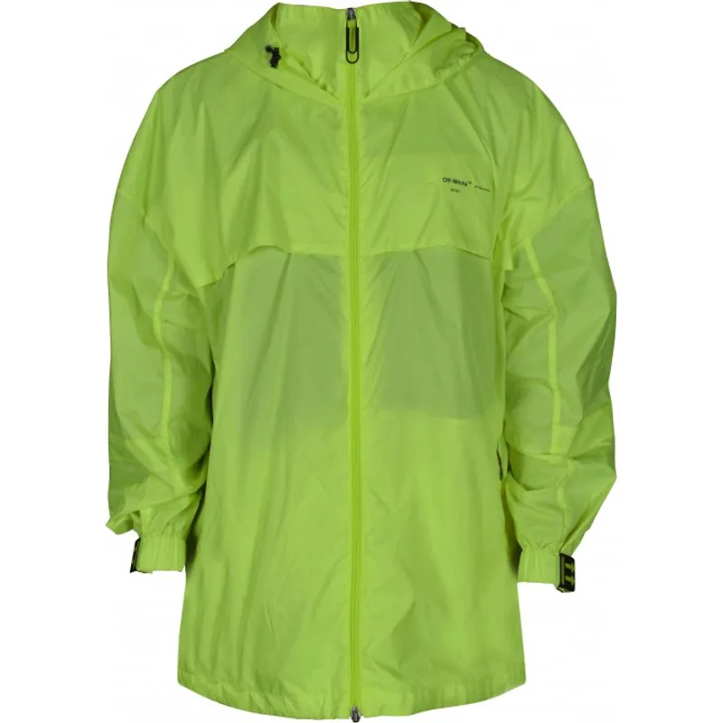 Gebroken wit fluo geel windjack met lange mouwen.'Off-White 2020' gedrukt op de voorkant. Twee zakken met ritssluiting aan de voorkant.Elastische zoom.Rubberen pijlpatch op manchetten.