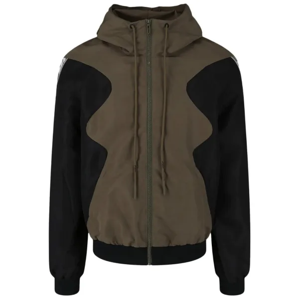 Gebroken witte Athleisure Diag Outline Design zwarte jas