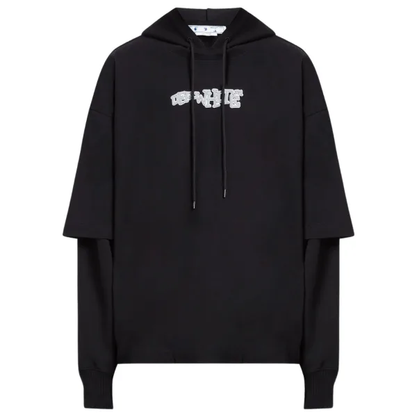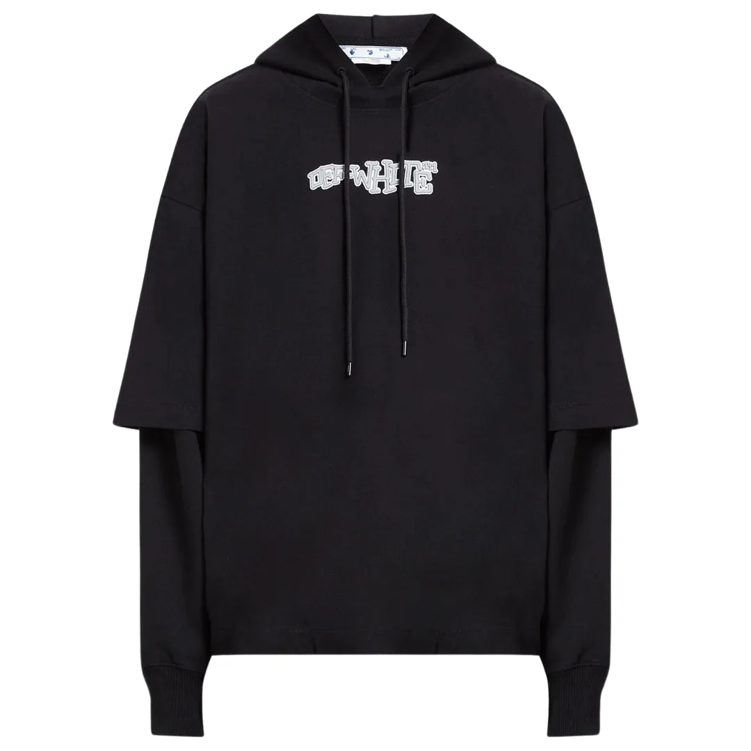 Blijf warm en stijlvol met deze Off-White Hoodie. Deze hoodie heeft een eigentijds ontwerp en het iconische logo en zal zeker een gespreksstarter zijn. Pronk met je unieke stijl!, Ontwerp met dubbele T-shirt/hoodie, Verstelbare capuchon met trekkoord, 100% katoen, Gemaakt in Italië, Streetwear, Zwarte hoodie, Trui met capuchon