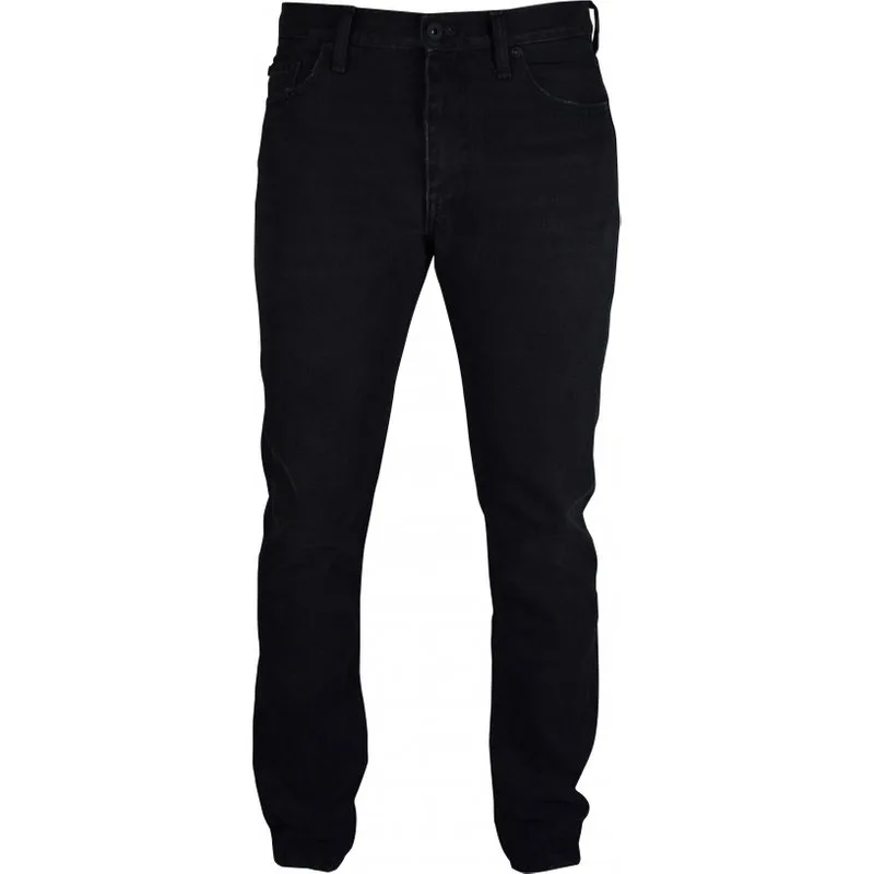 Zwarte 5-pocket slim fit jeans van gebroken wit katoen.Zwart logolabel op de achterkant.Handtekening blauwe strepen op de achterkant van de halve pijpen.Rechte jeans.100% katoen.