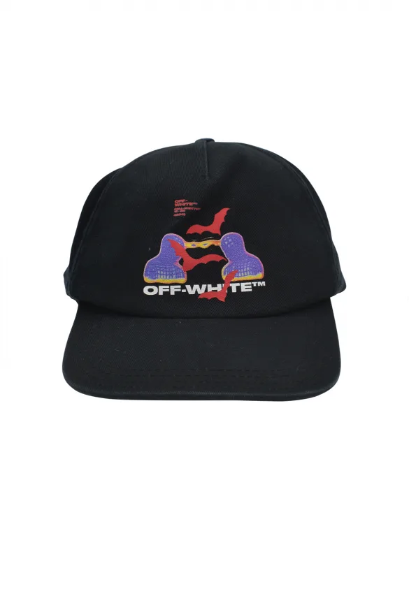 Zwarte gebroken witte pet. Gebogen klep.Grafische logoprint op de voorkant.Gemaakt van katoen.Verstelbare sluiting aan de achterkant.Gemaakt in Italië.