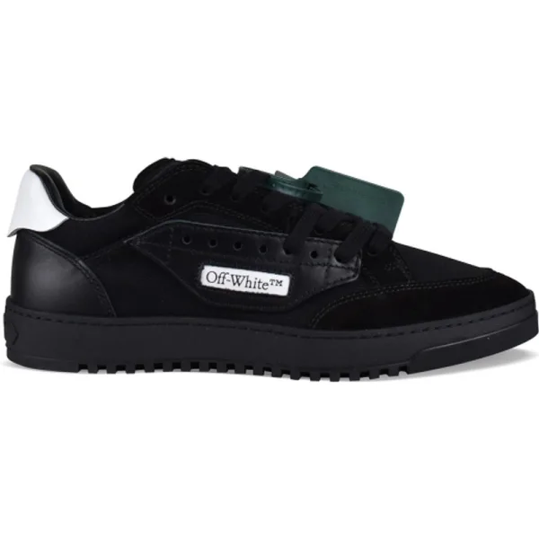 Zwarte gebroken witte sneakers.Van suède, leer en canvas.Wit schrijven op de veters: Schoenveters .Wit leren hielstuk.Off-White logo op de tong.Inzetstukken van zwart leer en katoen.Gebroken wit logo aan de zijkanten.Rubberen zool.Gemaakt in Italië.