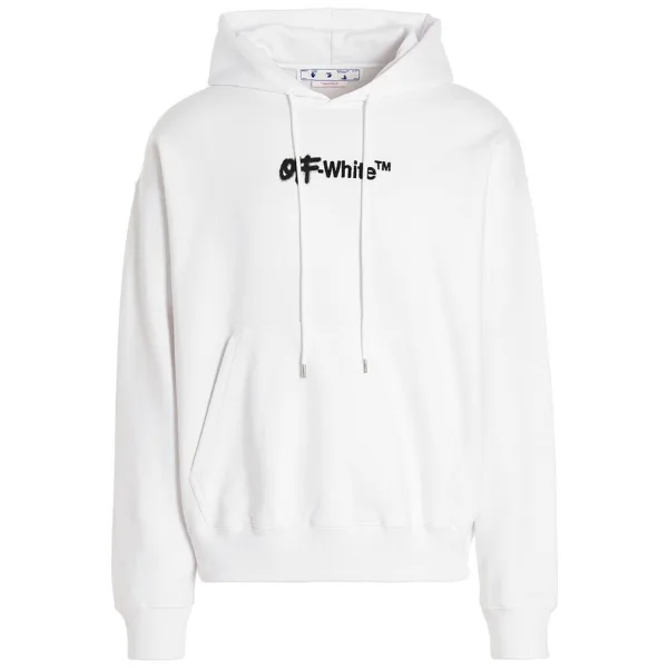 Gebroken witte spray Helvetica Skate Fit witte hoodie. Blijf warm en stijlvol met deze gebroken witte regular fit hoodie. Deze hoodie heeft een eigentijds ontwerp en het iconische logo en zal zeker een gespreksstarter zijn. Pronk met je unieke stijl!.. Spray-logo op de voorkant. Verstelbare capuchon met trekkoord, grote kangoeroezak aan de voorkant, normale pasvorm. 100% katoen. Stijlcode: OMBB085F22FLE0020110