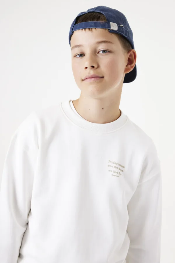 Sweater met tekstprint op de borst en op de rug. Met dit item kun je eindeloos combineren. Deze sweater heeft lange mouwen, een ronde halslijn en een dropped shoulder fit. Dit item is gemaakt van 100% katoen. Better Cotton is een initiatief dat zich wereldwijd inzet voor betere omstandigheden in de katoenindustrie.
