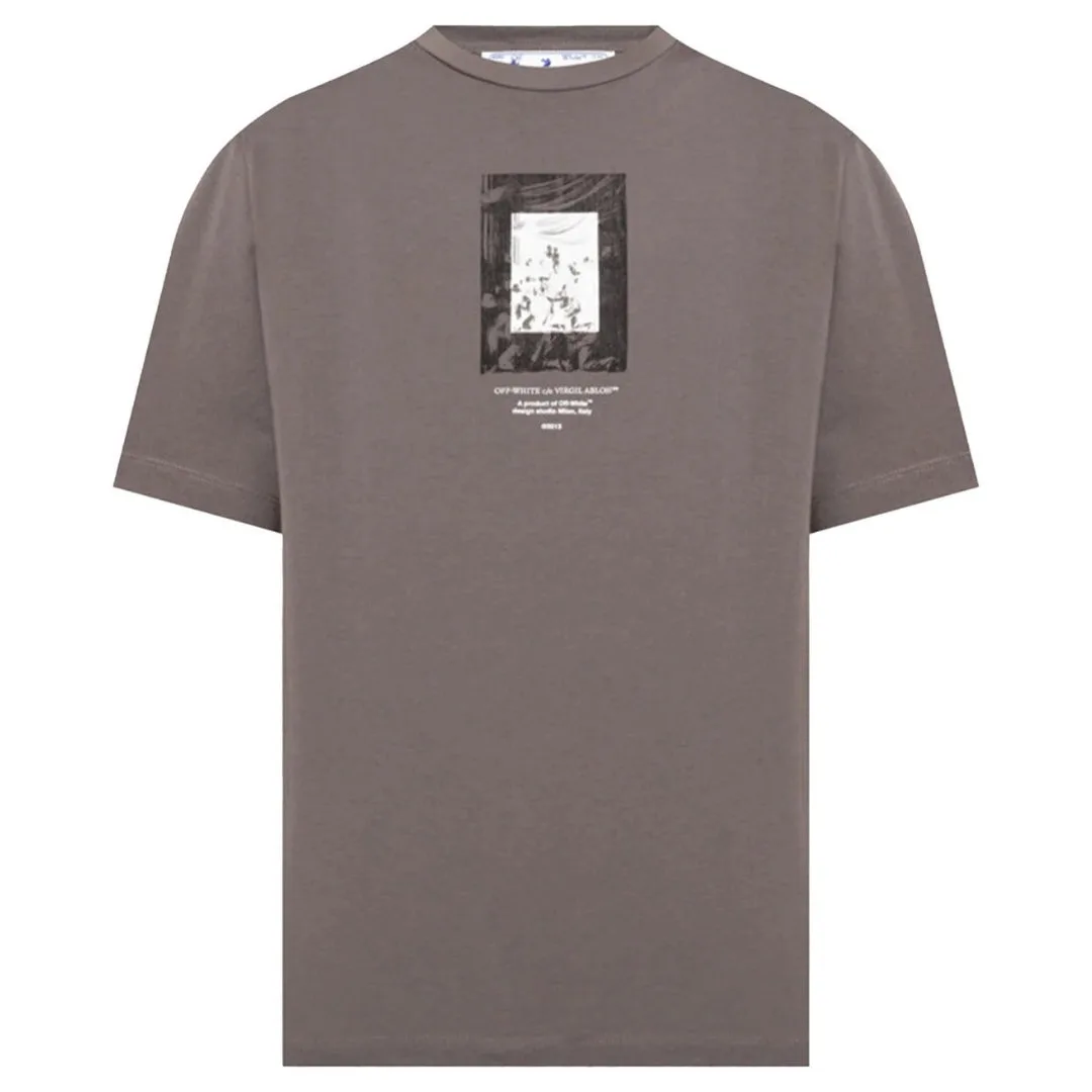 Blijf stijlvol met dit Off-White Grijze T-shirt. Dit T-shirt heeft een iconisch logo op de borst en zal zeker een gespreksstarter zijn. Pronk met je unieke stijl!, Gebroken wit logo, Gebroken wit grijs T-shirt, 100% katoen, Gemaakt in Italië, Ronde hals, Streetwear, Korte mouw, Grijs T-shirt