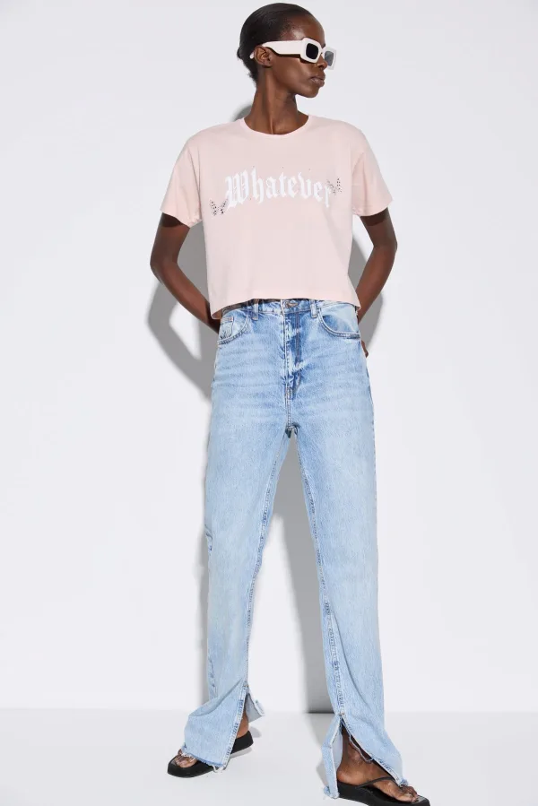 Design: Gevoerde zoom/rand; Materiaal: Jersey; Halstype: Ronde hals; Motief: Tekst print; Details: Sierstenen; Extra's: Voelt zacht aan; Pasvorm: Losse pasvorm; Armlengte: Kwartmouw; Lengte: Korte pasvorm