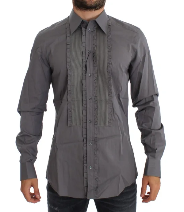 Verhoog je look, trek de aandacht en straal zelfvertrouwen uit. Dit Dolce & Gabbana overhemden zorgt ervoor dat je een blijvende indruk maakt op elk formeel evenement. Gemaakt van puur katoen, ervaar je ademend comfort en een luxe gevoel op je huid. Het slim fit ontwerp biedt een moderne, op maat gemaakte silhouet. Het geplooide voorpand en de ruches brengen een vleugje bijzondere flair. Geniet van een veilige en comfortabele pasvorm met de knoopsluiting. Dankzij de onderhoudsvriendelijke constructie is scherp eruitzien altijd moeiteloos. Maak een statement, waar je ook gaat.