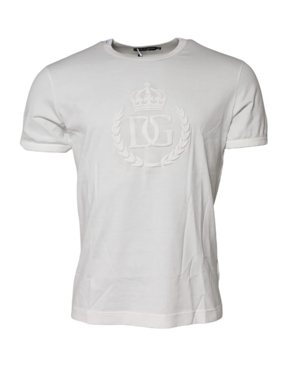 Verhoog je dagelijkse stijl. Dit Dolce & Gabbana T-shirt biedt een premium comfort en moeiteloze verfijning. Gemaakt van 100% katoen, biedt het een zachte, ademende feel op je huid. De klassieke ronde hals en korte mouwen zorgen voor een tijdloze silhouet, terwijl het reliëf Dolce & Gabbana-logo een subtiele luxe toevoegt. Geniet van de gemakkelijk te onderhouden constructie voor langdurig draagplezier. Perfect om te combineren met jeans of om je outfit op te stijlen met geklede broeken, dit T-shirt integreert naadloos in elke garderobe.