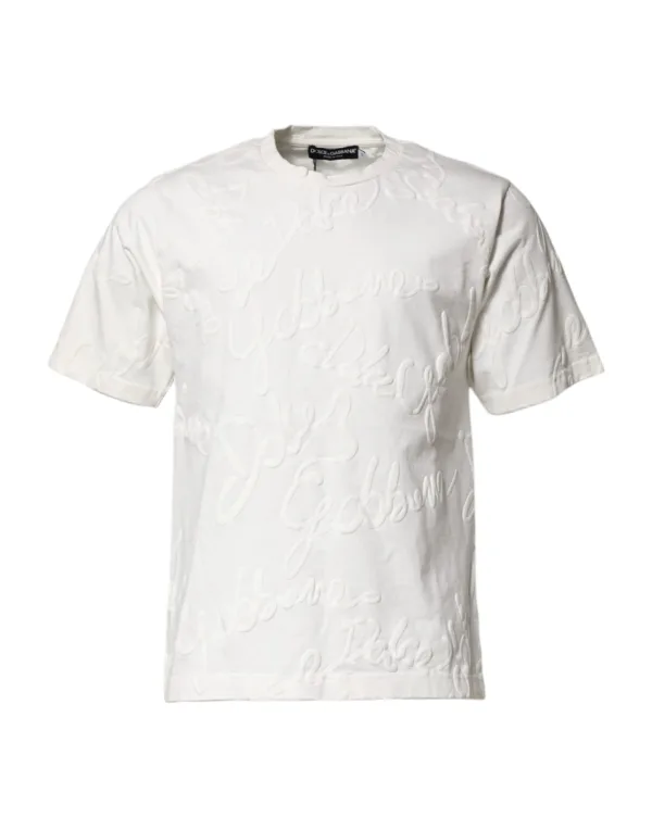 Verhoog je dagelijkse stijl. Ervaar premium comfort met dit T-shirt met logo-debossing. Gemaakt van puur katoen, biedt dit T-shirt een zachte, ademende gevoel op je huid, perfect voor een hele dag draagcomfort. Het unieke, gedebosserde Dolce & Gabbana-logo voegt een vleugje ingetogen luxe toe aan je casual look. Geniet van een comfortabele pasvorm die met je meegaat, of je nu boodschappen doet of thuis ontspant. Duurzaam en gemakkelijk te onderhouden, dit T-shirt zal een basisstuk in je garderobe worden.