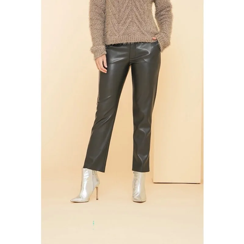 • Fit: Aangesloten pasvorm• Sluiting: twee schuifjes met ritssluiting• Zakken: Steekzakken• Broekspijpen: recht uitlopende broekspijpjes• Details: leder look kleur: black Materiaal: 100% polyester Model is 175cm lang en draagt maat S/36.