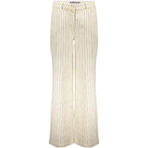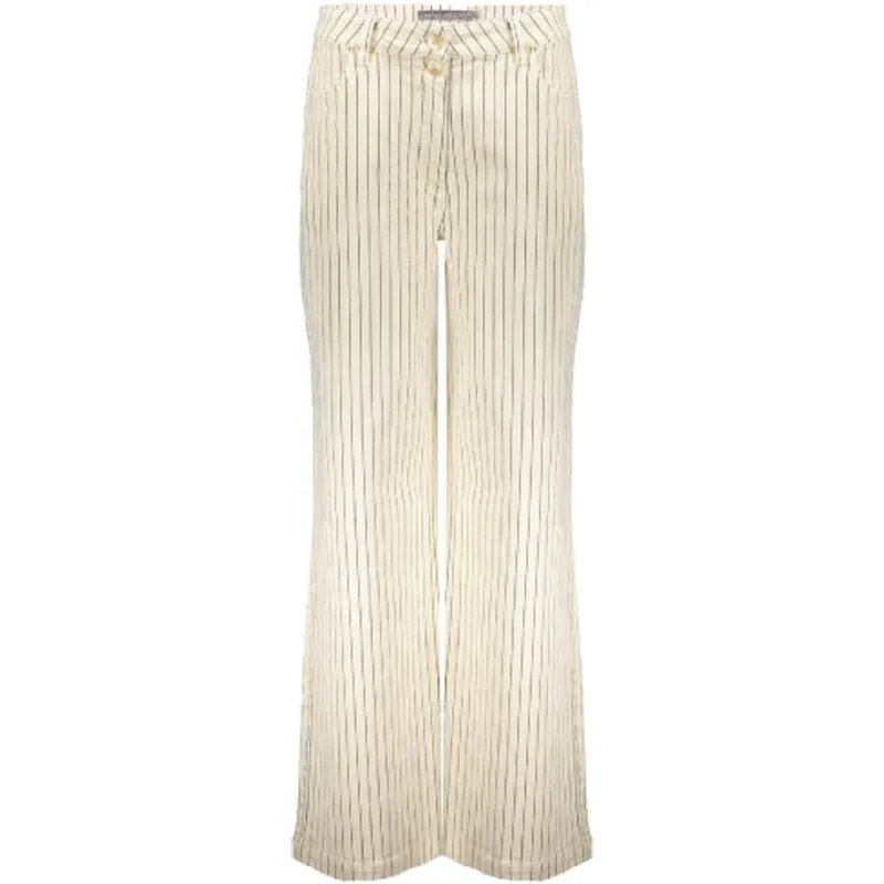 De Jeans wide + pleads (51025-10) van GEISHA is een broek met normale taille met riemlussen, knoop-en ritssluiting en heeft een wijde fit. De broek heeft steekzakken aan de voor en achterzijde en is uitgevoerd in een stripe print in de kleuren Ecru/Indigo.De stof van deze broek is gemaakt van Katoen, Polyester, Elastaan.
