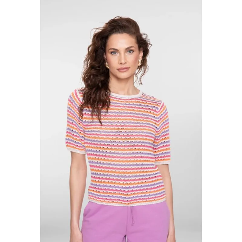 Geisha 64088-70 718 pullover multi col stripe s/sl ecru/purple/orange/cyclame