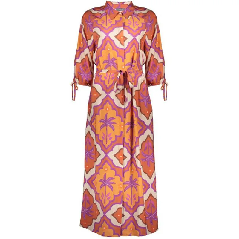 67104-20 718 Geisha dress ecru/mango/purple Materiaal: 84% viscose / 16% polyamide