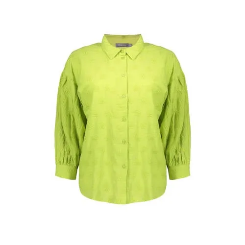 Breng kleur in je garderobe met deze Geisha blouse limegroen. De korte damesblouse heeft een frisse limegroene tint die meteen opvalt, terwijl de broderie details zorgen voor een verfijnde, vrouwelijke uitstraling. Gemaakt van 100 procent katoen voelt de stof luchtig en soepel aan, ideaal voor lentedagen en vroege zomermomenten.Limegroene blouse met broderie Effen limegroene kleur die gemakkelijk combineert met lichte en donkere onderstukken Korte lengte, perfect op een high waist jeans, rok of pantalon Driekwart rechte mouwen voor een ontspannen, maar verzorgde look Broderie details geven extra structuur en een subtiele, vrouwelijke touch Klassieke kraag en volledige knoopsluiting voor een nette afwerking Gemaakt van 100 procent katoen, prettig draagcomfort door de zachte, ademende stof Effen ontwerp zonder zakken, waardoor de broderie mooi centraal staatFris voor lente en vroege zomerDeze limegroene blouse past goed bij het lichtere gevoel van de lente. Combineer met een lichte jeans en sneakers voor een casual dag, of draag de blouse op een zwarte pantalon met loafers voor een meer geklede combinatie. De driekwart mouwen maken het een fijne keuze voor wisselvallige dagen.Geisha met gevoel voor modeGeisha staat bekend om modieuze collecties met een vrouwelijke, eigentijdse stijl. Het merk speelt in op actuele trends, maar houdt de ontwerpen tegelijkertijd draagbaar voor elke dag. Met deze blouse kies je voor een kledingstuk dat is ontworpen met aandacht voor kleur, details en pasvorm.Een frisse, lichtgewicht blouse die je garderobe klaar maakt voor zonnige dagen.