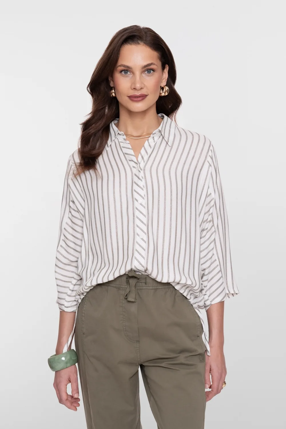 Geisha Blouse Lurex Stripes 63131-99 Blouse 10 Off-white/silver