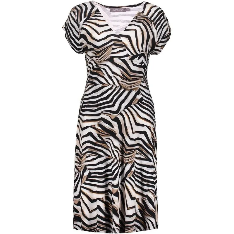 Geisha Dress v-neck short aop ecru dessin Prijzen