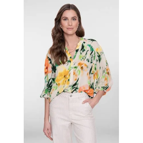 Fris, vrouwelijk en moeiteloos te stylen, deze Geisha dames blouse brengt direct kleur in je garderobe. De multicolor bloemenprint geeft een levendige uitstraling, terwijl de rechte driekwart mouwen en klassieke kraag zorgen voor een rustige, verzorgde look. Gemaakt van 100 procent viscose voelt de blouse soepel aan op de huid en valt de blouse mooi langs het lichaam.Vrouwelijke details voor elke dag Multicolor bloemenprint voor een frisse, lenteachtige uitstraling Driekwart mouwen met rechte inzet, ideaal voor het tussenseizoen Klassieke kraag en knoopsluiting voor een nette, tijdloze look Soepel materiaal dat licht en comfortabel draagt Geen borstzakken voor een rustige, vrouwelijke belijningMakkelijk te combineren in jouw stijlDeze blouse uit de 'Feminine' collectie past goed bij zowel een rechtvallende jeans als een elegante pantalon. Voor een casual dag draag je de blouse los over een smalle broek, voor een meer geklede outfit stop je hem in een rok met hoge taille. De driekwart mouwen maken het een fijne keuze voor lente en vroege herfst, eventueel met een dun vest eroverheen.Geisha: eigentijdse mode met oog voor detailGeisha staat bekend om modieuze collecties met herkenbare prints en een comfortabele pasvorm. De focus ligt op draagbare items die aansluiten bij het dagelijks leven, met zorg voor kleuren en details. Met deze blouse haal je een stijlvol kledingstuk in huis dat je vaak en met plezier kunt dragen.Een kleurrijke basic die je makkelijk pakt op werkdagen, maar ook bij een etentje niet misstaat.
