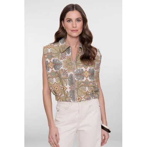 Maak je outfit compleet met dit korte Geisha blazer gilet in beige. De blazer heeft een moderne, iets kortere lengte en lange mouwen, waardoor hij zowel over een top als over een jurkje goed tot zijn recht komt. De zachte stof valt soepel en voelt prettig aan op de huid, ideaal voor de overgang van winter naar lente.Vrouwelijke details in een tijdloos ontwerp Korte blazer met lange mouwen, passend bij een moderne, vrouwelijke look Beige kleur met subtiele bloemenprint, passend bij de Feminine collectie Reverskraag en knoopsluiting voor een nette, verzorgde uitstraling Sierzakken aan de voorkant voor een rustige afwerking Gemaakt van een soepele, vormvaste stof die mooi in model blijftStyling voor werk en vrije tijdDeze blazer is geschikt voor de lente. Draag hem op een rechte jeans en een eenvoudige top voor een casual dag, of combineer met een nette broek voor een werkafspraak. Door de beige basiskleur laat hij zich goed combineren met rustige tinten zoals wit en ecru, maar ook met zachte pastelkleuren.Geisha: eigentijdse mode met een vrouwelijke touchGeisha staat bekend om kleding met een vrouwelijke pasvorm en doordachte details. De ontwerpen sluiten aan bij het dagelijks leven, met items die je makkelijk combineert en vaak kunt dragen. Zo haal je met deze blazer een kledingstuk in huis dat goed past binnen een moderne garderobe.Een blazer die je het hele seizoen door kunt dragen en eenvoudig aanpast aan verschillende gelegenheden.