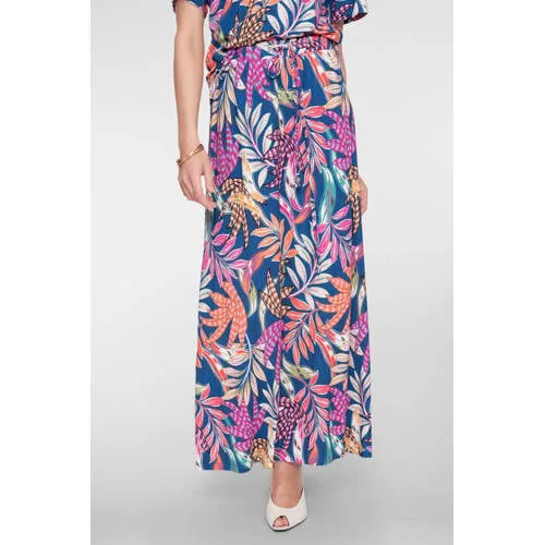 Deze lange rok van Geisha brengt kleur en beweging in je zomergarderobe. De luchtige stof valt soepel om je lichaam en de blauw/roze print met bladeren en bloemen geeft een frisse, vrouwelijke uitstraling. Dankzij de elastische taille met koord sluit de Geisha maxi rok voor dames prettig aan, zonder te knellen. Ideaal voor warme dagen waarin je je vrij wilt bewegen maar toch verzorgd voor de dag wilt komen.Zomerse maxi rok met sierlijke print Lange maxi rok met zomerse blad- en bloemenprint in blauw/roze Gemaakt van 95% viscose en 5% elastaan voor een soepele, zachte touch Elastische tailleband met koord voor een comfortabele, verstelbare pasvorm Regular waist die mooi in de taille valt Zonder zakken waardoor de rok mooi slank langs het lichaam valt Perfect voor het zomerseizoen, van werkdag tot terrasavondMakkelijk te dragen, makkelijk te stylenCombineer deze lange rok simpel met een basic T-shirt of top in wit, blauw of roze en een paar sandalen of sneakers. De elastische tailleband maakt aan- en uittrekken eenvoudig, wat fijn is op drukke dagen. Door de maximale lengte straalt de rok net iets meer elegantie uit, terwijl de soepele stof het draaggevoel luchtig houdt.Geisha: moderne stijlen met een speelse twistGeisha staat bekend om kleding met een eigen handschrift, vaak met opvallende prints en een comfortabele pasvorm. De collecties sluiten aan bij een moderne, vrouwelijke stijl en zijn ontworpen om makkelijk te combineren. Met deze rok haal je een modieus item in huis dat je vaak uit de kast pakt.Een zwierige keuze voor dagen waarop je er verzorgd uit wilt zien zonder in te leveren op comfort.