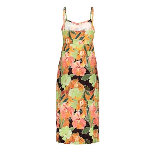 Ga voor een vrouwelijke en luchtige look met deze Geisha midi zomerjurk met bloemenprint. De jurk heeft een zwarte basis met oranje en roze bloemen, wat zorgt voor een frisse en zomerse uitstraling. De midi lengte valt rond de knie tot net erover en beweegt soepel mee als je loopt. Door de spaghettibandjes en V-hals is deze jurk ideaal voor warme dagen en zonnige momenten.Details die het verschil maken Zwarte jurk met oranje en roze bloemenprint voor een speelse zomerse look Midi lengte die rond de knie valt voor een vrouwelijke uitstraling Spaghettibandjes en V-hals geven een luchtig en open gevoel Gemaakt van 95% viscose en 5% elastaan voor een soepele stof met lichte stretch Plooidetails zorgen voor een mooie, zwierige valling Geen sluiting, waardoor de jurk eenvoudig aan en uit te trekken is Valt binnen de 'Feminine' collectie en standaardmaten voor damesZomerse jurk voor elke dagDeze midi zomerjurk past goed bij dagen waarop je iets luchtigs wilt dragen dat toch verzorgd oogt. Combineer met sandalen of sneakers voor een casual look, of met een fijn vestje wanneer het in de avond wat afkoelt. De lichte stof en het mouwloze ontwerp maken deze jurk geschikt voor vakantie, een dagje stad of een terras in de zon.Geisha: moderne stijl met een vrouwelijke touchGeisha staat bekend om modieuze collecties met aandacht voor kleur en print. De ontwerpen sluiten aan op de trends van nu, maar blijven tegelijkertijd draagbaar voor alledaagse momenten. Met deze jurk kies je voor een stijlvol item dat past in een moderne garderobe.Een zomerse keuze die je garderobe meteen een frisse update geeft.