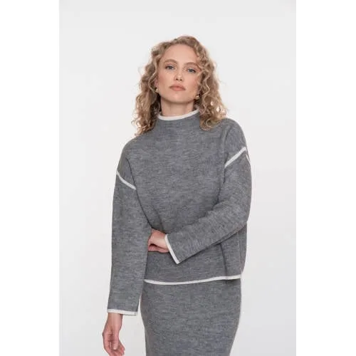 Geisha Pull Turtle Contrast Stripe Grey Melange/offwhite