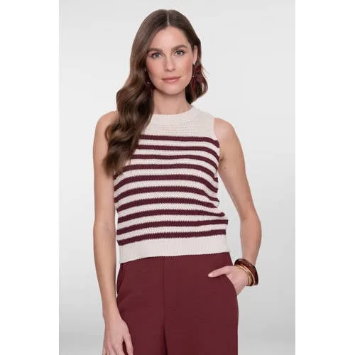 Geisha gestreepte top donkerrood grof gebreid
