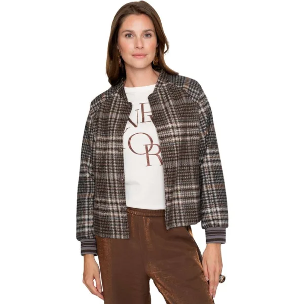 Dit bruine sweatvest van Geisha combineert een geruit ontwerp in zachte tinten bruin, zwart en grijs met een subtiele lurexglans, waardoor het meteen een chique touch aan je garderobe geeft. Het normale, recht model met bomberkraag voelt vertrouwd en beweegt mee met je dagelijkse ritme, terwijl de ribbelboord aan de mouwen het geheel net wat meer structuur en karakter geeft. Gemaakt van een mix van katoen en polyester stretchy geweven, heeft het vest een aangename dikte die warmte biedt zonder te zwaar aan te voelen, ideaal voor laagjes en buitenkansjes. De drukkersluiting maakt het makkelijk om het open te dragen voor een nonchalante look of dicht, wanneer je een meer afgewerkte uitstraling wilt. Door de geruite print oogt het zowel modieus als tijdloos, en de normale pasvorm laat ruimte om te combineren met jeans of een chique rok. Dit item past moeiteloos in je collectie dames truien en vesten en toont aandacht voor detail zonder te schreeuwen. Draag het met vertrouwen en geniet van de subtiele glamour die elke dag net iets aangenamer maakt.