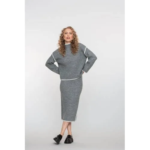 Geisha Skirt Knit Contrast Hem Grey Melange/off-white