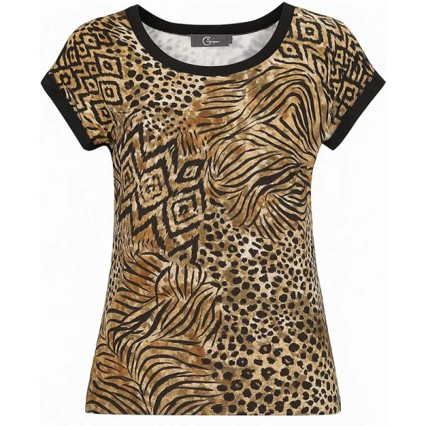 Dit bruin dessin kleurige t-shirt van het merk Geisha dames is het perfecte item voor in jouw kledingkast. Het t-shirt is gemaakt van 95% viscose en 5% elastan, waardoor het heerlijk zacht en comfortabel aanvoelt. De print in bruine tinten geeft het t-shirt een speelse en trendy look. Dit t-shirt is ideaal voor zowel casual als geklede gelegenheden en kan eindeloos gecombineerd worden met verschillende outfits. Bestel nu dit must-have item en voeg het toe aan jouw garderobe!